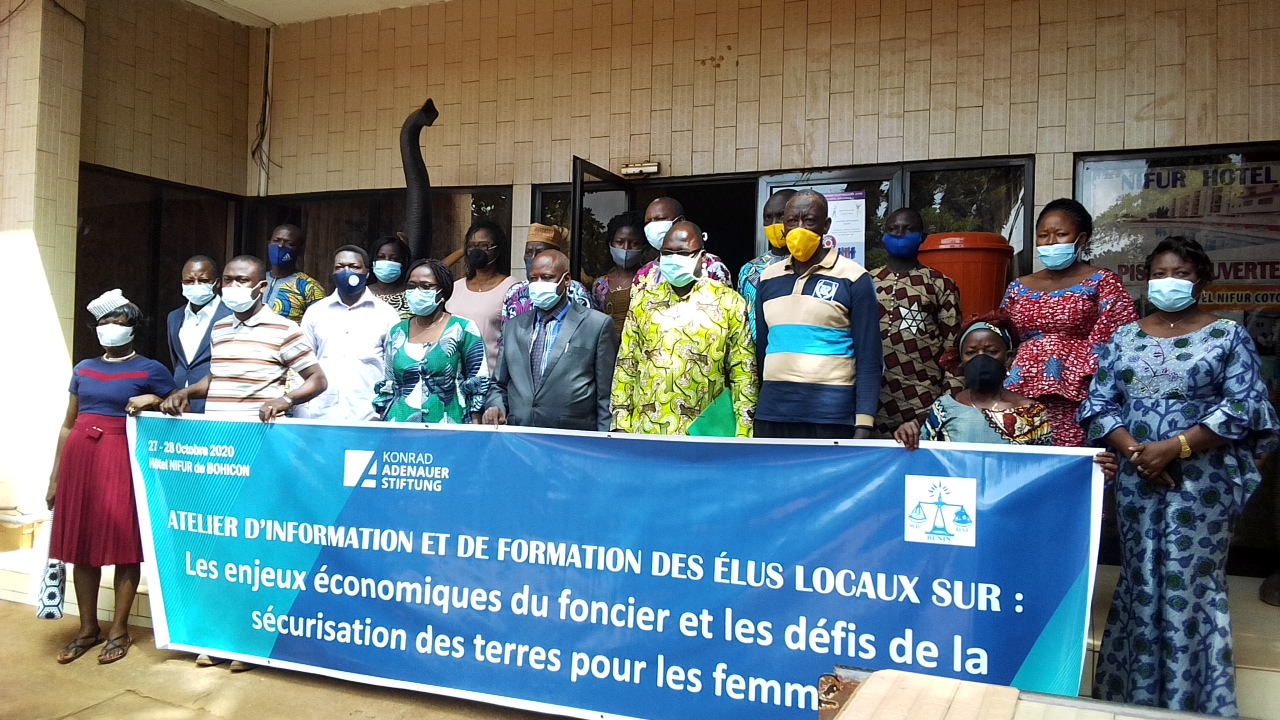 « Les enjeux économiques du foncier et les défis de la sécurisation des terres pour les femmes », c’est le thème d’un atelier de sensibilisation et de plaidoyer des acteurs de la question foncière du département du Zou. Organisé conjointement avec le Réseau WiLDAF/FeDDAF-Bénin et la Konrad Adenauer Stiftung (KAS), ce rendez-vous de formation et d’information se déroule à l’Hôtel NIFUR de Bohicon, ce mardi 27 pour le premier groupe venu des communes de Ouinhi, Zangnanado et Zogbodomey et le mercredi 28 octobre 2020 pour le second groupe des communes de Djidja, Covè et Agbagnizoun.