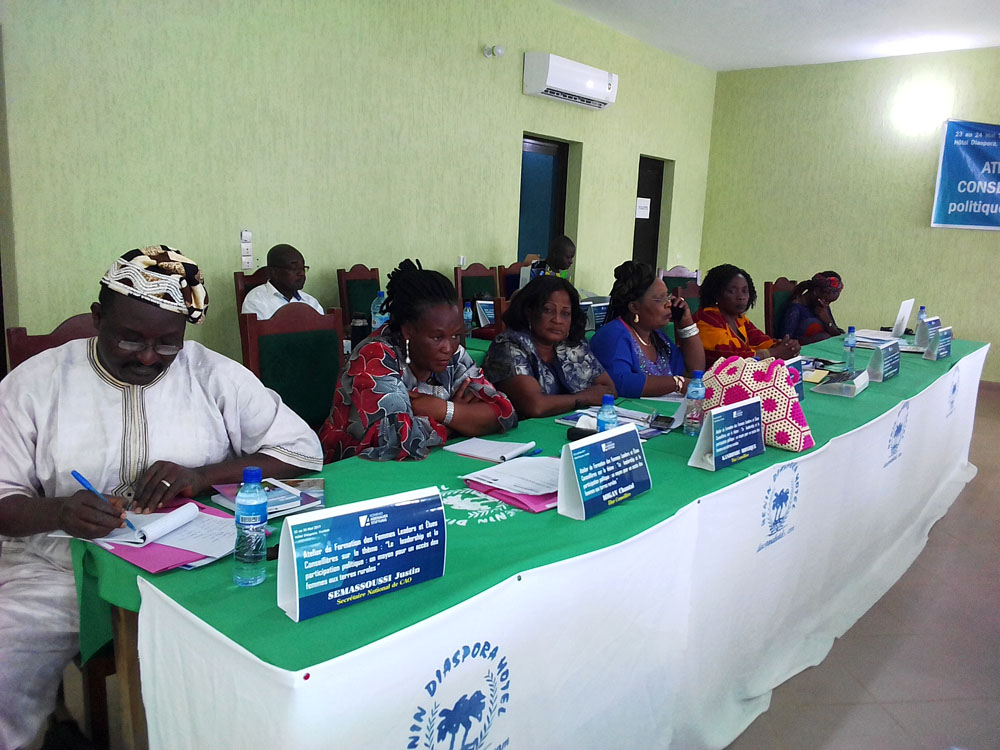 « Le leadership et la participation politique : un moyen pour un accès des femmes aux terres rurales » l’analyse de ce thème établit qu’une présence significative des femmes dans les instances de décision au niveau local et national est susceptible d’améliorer les performances économiques et sociales à toutes les échelles de la sphère nationale vers celle de la famille.