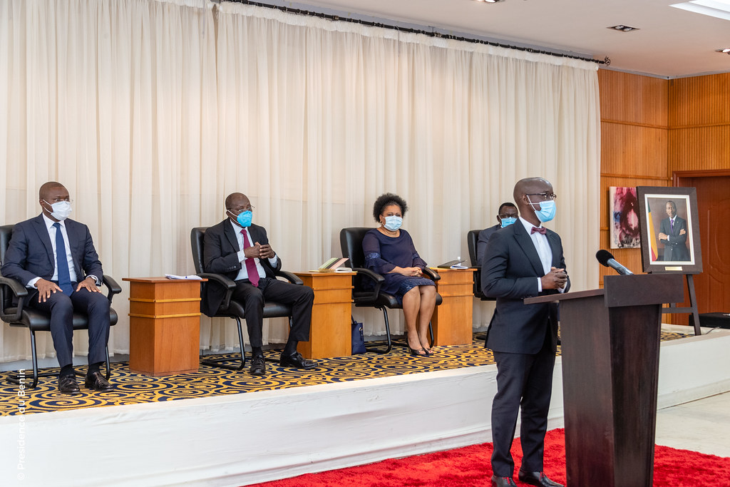 Ils étaient cinq ministres du Gouvernement – le ministre d’Etat en charge du Plan, Abdoulaye Bio Tchané, le ministre des Finances, Romuald Wadagni, le ministre de l’Agriculture, Gaston Dossouhoui, le ministre des PME, Modeste Kérékou et le ministre des Affaires sociales, Véronique Tognifodé – réunis pour  apporter des clarifications aux représentants des banques et des Systèmes financiers décentralisés, sur le bienfondé des dernières mesures spécifiques et complémentaires prises par le Gouvernement en direction du secteur agricole pour atténuer les effets de Covid-19.